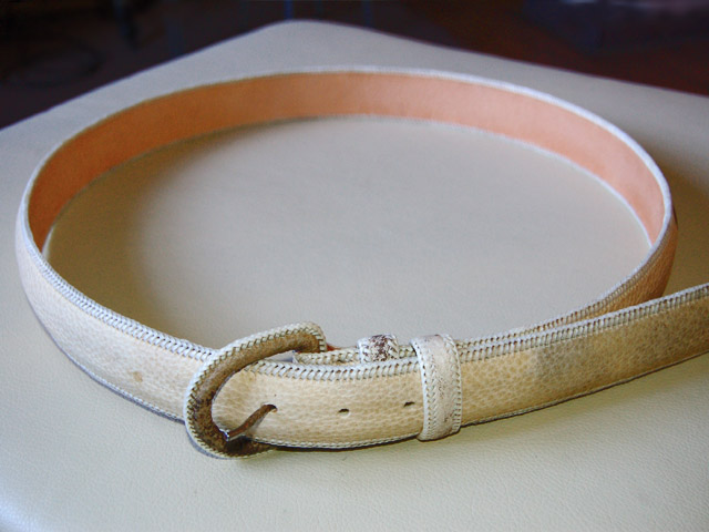 Cinturón de cuero crudo confeccionada artesanalmente. Corrión en la orilla. Hebilla forrada o metálica. Ancho: 4 cms. Largo: 105 -120. Opciones de color: blanco - negro.